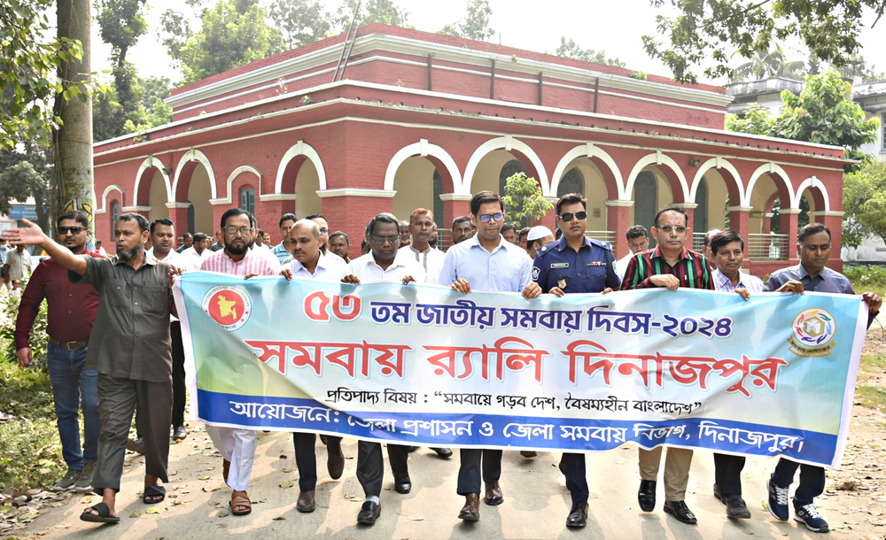 “সমবায়ে গড়ব দেশ, বৈষম্যহীন বাংলাদেশ” এই প্রতিপাদ্য বিষয় নিয়ে যথাযোগ্য মর্যাদায় ৫৩তম জাতীয় সমবায় দিবস-২০২৪ উদযাপন উপলক্ষ্যে র্যালী করেছে দিনাজপুর সরকারি কর্মচারী সমবায় সমিতি লি.।