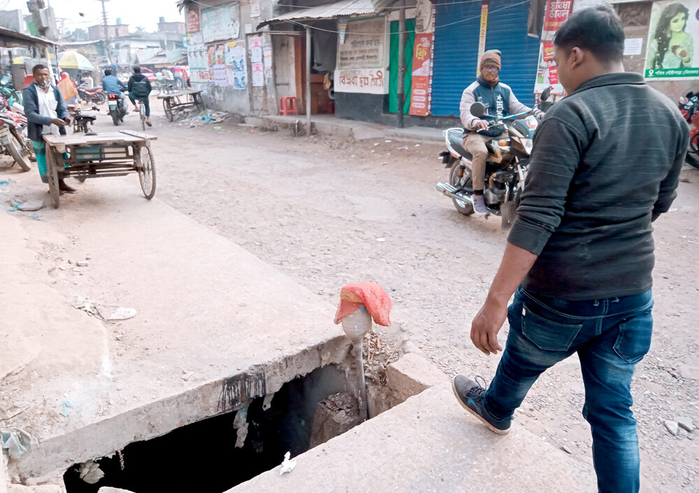 স্থানীয় পূর্ণিমা ড্রেসিং সেলুনের সত্ত্বাধিকারী শ্রী ভুষণ শীল জানান, স্ল্যাব ভেঙে পড়া দুই আড়াই মাস হলেও পৌরসভার থেকে কেউ দেখতেও আসেনি। অনাকাঙ্খীত দুর্ঘটনা এড়াতে ব্যক্তিগত উদ্যোগে সেখানে লাল পতাকা টানিয়ে দেয়া হলেও অসাবধানতা বশতঃ দুর্ঘটনা ঘটেই চলেছে। সড়কের একপাশ বন্ধ থাকায় যান বাহন চলাচলে বিঘ্ন ঘটছে।
