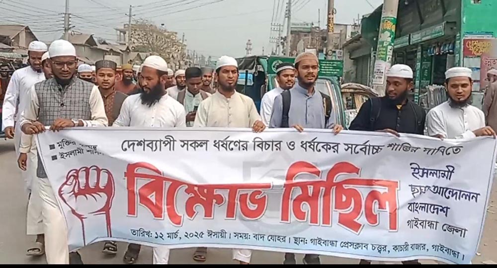 দেশব্যাপী সকল ধর্ষণের বিচার ও ধর্ষকের সর্বোচ্চ শাস্তির দাবিতে বুধবার ইসলামী ছাত্র আন্দোলন বাংলাদেশ গাইবান্ধা জেলা শাখার উদ্যোগে শহরে একটি বিক্ষোভ মিছিল বের হয়ে বিভিন্ন সড়ক প্রদক্ষিণ করে। মিছিল শেষে শহরের কাচারী বাজার এলাকায় এক সমাবেশে মিলিত হয়।