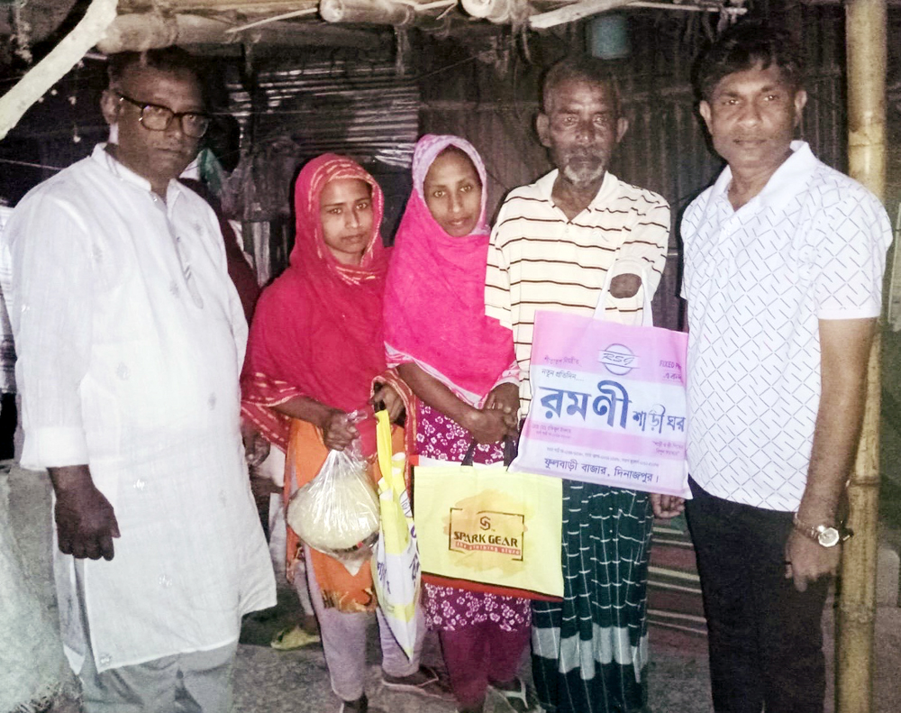 ওমরের অসহায় পরিবারের পাশে দীর্ঘদিন থেকে সহায়তার হাত বাড়িয়ে আসছে দেশ মা পরিবার। তারই ধারাবাহিকতায় রাতের আঁধারে ঈদের উপহার নিয়ে তার বাড়িতে হাজির হয় দৈনিক দেশ মা’র ভারপ্রাপ্ত সম্পাদক ও ফুলবাড়ী প্রেসক্লাবের সাধারণ সম্পাদক মো. ওয়াহিদুল ইসলাম ডিফেন্স, দৈনিক দেশ মা’র ব্যবস্থাপনা সম্পাদক আনন্দ কুমার গুপ্ত, সহ-সম্পাদক ও দৈনিক আজকের পত্রিকার ফুলবাড়ী প্রতিনিধি মেহেদি হাসান উজ্জ্বল ও দেশ মা’র অনলাইন ইনচার্জ ও দৈনিক আমার দেশ পত্রিকার ফুলবাড়ী প্রতিনিধি মোকাররম হোসেন।