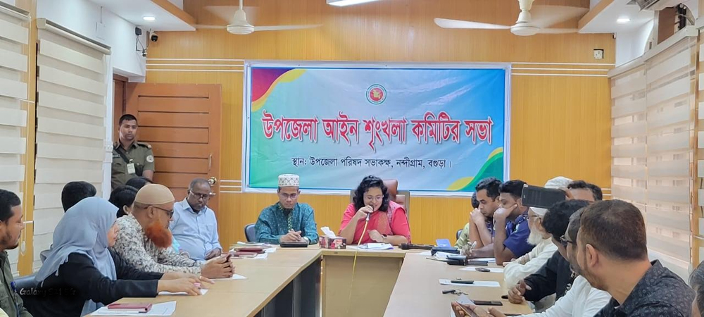 বগুড়ার নন্দীগ্রাম উপজেলা মাসিক আইন শৃঙ্খলা কমিটির সভা অনুষ্ঠিত হয়েছে। আজ মঙ্গলবার সকাল সাড়ে ১০ টায় উপজেলা পরিষদের সভাকক্ষ ভদ্রাবতীতে উপজেলা নির্বাহী অফিসার মোসা. লায়লা আঞ্জুমান বানু’র সভাপতিত্বে এ সভা অনুষ্ঠিত হয়।