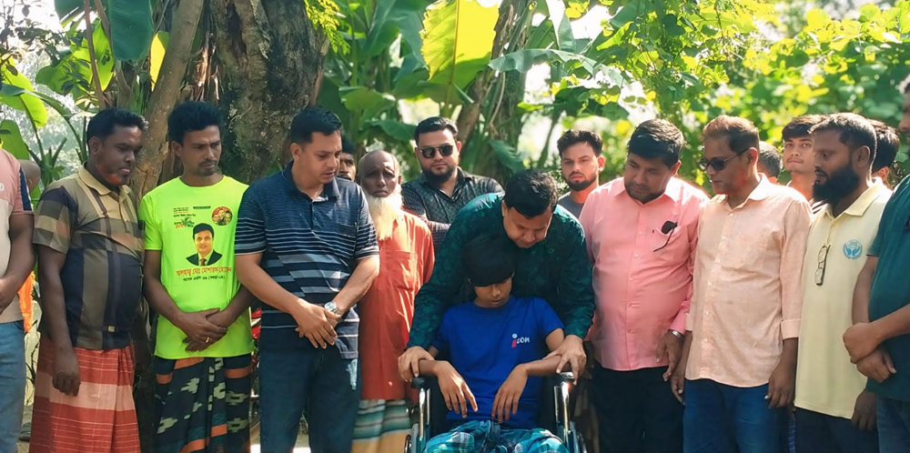 নন্দীগ্রামে দুই পা হারানো আহাদের পাশে সাবেক এমপি মোশারফ হোসেন