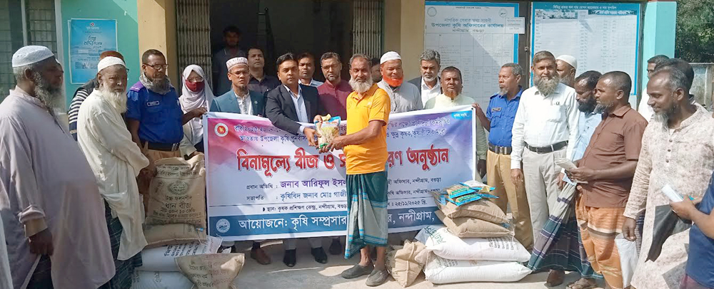 উপজেলা কৃষি পুনর্বাসন বাস্তবায়ন কমিটি অনুমোদিত প্রান্তিক কৃষক/কৃষাণীদের ১৬০০ জনের মাঝে বোরো ধানবীজ ও সার এবং ৫০ জনের মাঝে বোরো হাইব্রিড ধানবীজ ও সার বিনামূল্যে বিতরণ কার্যক্রমের উদ্বোধন করেন উপজেলা নির্বাহী অফিসার আরিফুল ইসলাম। এসময় উপস্থিত ছিলেন উপজেলা কৃষি অফিসার গাজিউল হক, কৃষি সম্প্রসারণ অফিসার আশিকুর রহমান, শর্মিলী ইসলাম, উপজেলা প্রকল্প বাস্তবায়ন অফিসার সরদার ফজলুল করিম, বুড়ইল ইউপি চেয়ারম্যান জিয়াউর রহমান জিয়া, সদর ইউপি চেয়ারম্যান রেজাউল করিম কামাল, ভাটগ্রাম ইউপি চেয়ারম্যান আবুল কালাম আজাদ, থালতামাজগ্রাম ইউপি প্যানেল চেয়ারম্যান সামছুর রহমান, নন্দীগ্রাম মডেল প্রেসক্লাবের সাধারণ সম্পাদক প্রভাষক জাকারিয়া লিটন, যুগ্ম-সাধারণ সম্পাদক প্রভাষক আব্দুর রউফ উজ্জল, উপসহকারী উদ্ভিদ সংরক্ষন অফিসার জাকিরুল ইসলাম, উপসহকারী কৃষি অফিসার নাজমুল হোসেন, শাহারুল ইসলাম, খাদেমুল ইসলাম, শাহাদাত হোসেন, সোহেল রানা, আব্দুস সালাম, সুজন কুমার, জহুরুল ইসলাম প্রমুখ।