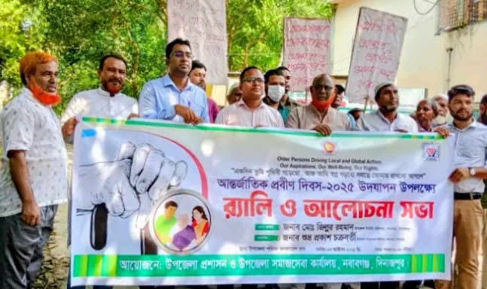 দিনাজপুরের নবাবগঞ্জে আন্তর্জাতিক প্রবীণ দিবস উদযাপন উপলক্ষে র্যালি ও আলোচনা সভা অনুষ্ঠিত হয়েছে।