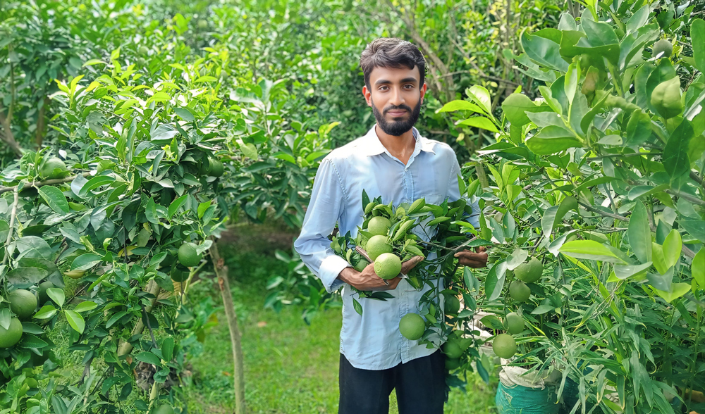 মাত্র ষোল শতক জমিতে উপজেলা কৃষি অফিসের দেয়া পরীক্ষামূলক মাল্টা ফলের প্রদশর্নী চাষ দিয়ে শুরু এখন সফল উদ্যোক্তা বনে গেছেন নবাবগঞ্জ উপজেলার মাহামুদুন্নবী স্বাধীন। কৃষি বাগান গড়ে স্বাবলম্বী স্বাধীনকে আর পিছনে ফিরে তাকাতে হয়নি। উপজেলার প্রত্যন্ত অঞ্চল রঘুনাথপুর গ্রামের কৃষক সাজু মিয়ার ছেলে মাহামুদুন্নবী স্বাধীন। শুরুটা মাল্টা চাষ দিয়ে শুরু হলেও এখন তার বাগানে রয়েছে মাল্টা, চায়না কমলা, কাজু বাদাম সহ বিভিন্ন প্রজাতির ফল। পাশাপাশি মাল্টা বাগানে সাথি ফসল হিসেবে চাষ করছেন মসলা জাতীয় ফসল আদা। সফল উদ্যোক্তা স্বাধীন এখন হাজারো বেকার যুবকের কাছে আইডল।