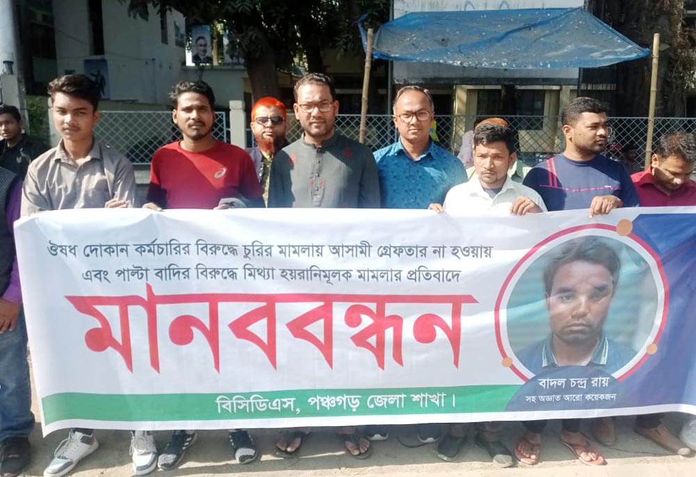 পঞ্চগড়ে ওষুধ ব্যবসায়ীদের মানববন্ধনে আসামি গ্রেফতারের দাবি