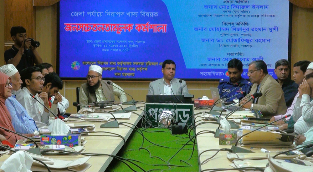 পঞ্চগড় জেলা প্রশাসনের উদ্যোগে ও বাংলাদেশ নিরাপদ খাদ্য কর্তৃপক্ষের সহায়তায়, নিরাপদ খাদ্য বিষয়ে জনসচেতনতা বৃদ্ধির লক্ষ্যে, একটি কর্মশালা অনুষ্ঠিত হয়েছে। আজ মঙ্গলবার সকালে জেলা প্রশাসকের সম্মেলন কক্ষে আয়োজিত এই কর্মশালায় সভাপতিত্ব করেন অতিরিক্ত জেলা প্রশাসক (সার্বিক) আবু সাঈদ এবং প্রধান অতিথি হিসেবে উপস্থিত ছিলেন বাংলাদেশ নিরাপদ খাদ্য কর্তৃপক্ষের সক্ষমতা বৃদ্ধিকরণ প্রকল্পের পরিচালক (যুগ্ম সচিব) দিদারুল ইসলাম।