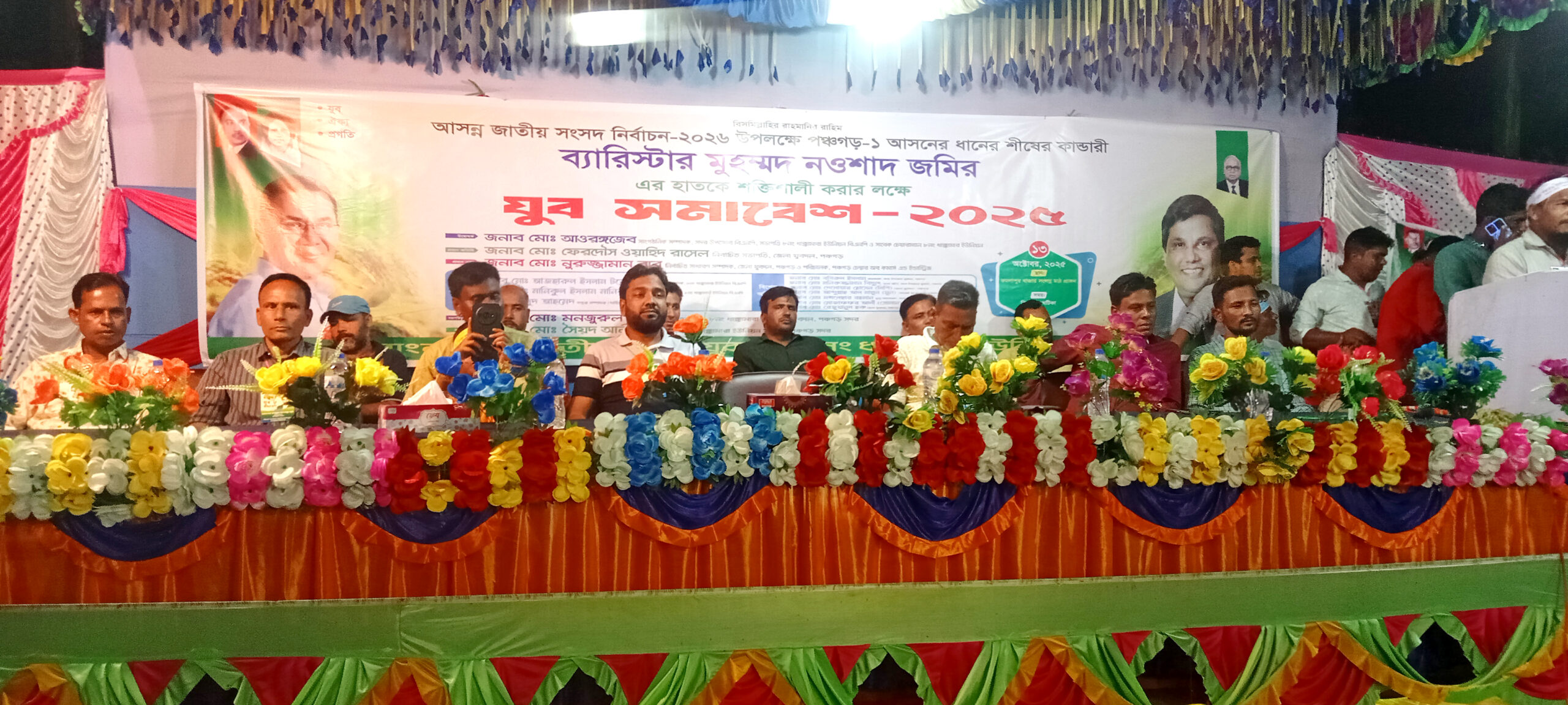 আসন্ন জাতীয় সংসদ নির্বাচন উপলক্ষে পঞ্চগড়-১ আসনের ধানের শীষের কান্ডারী ব্যারিস্টার মো. নওশাদ জমির এর হাতকে শক্তিশালী করার লক্ষ্যে যুব সমাবেশ ২০২৫ অনুষ্ঠিত হয়েছে।