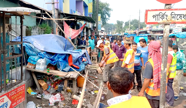 পঞ্চগড়-বাংলাবান্ধা মহাসড়কে অবৈধ স্থাপনা উচ্ছেদ অভিযান