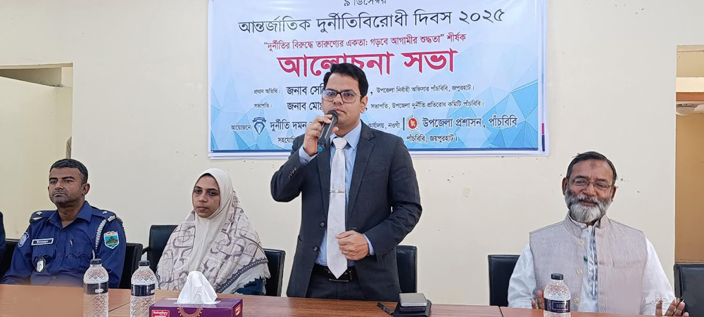 জয়পুরহাটের পাঁচবিবিতে "দূর্নীতির বিরুদ্ধে তারুণ্যের একতা, গড়বে আগামী শুদ্ধতা শীর্ষক আলোচনা সভা অনুষ্ঠিত হয়েছে।