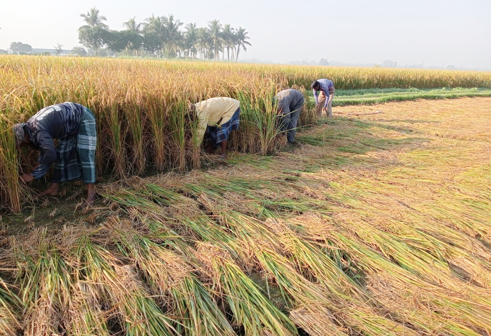 পাঁচবিবিতে আমন ধান কাটা মাড়াই শুরু