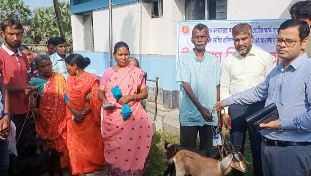 পাঁচবিবিতে ক্ষুদ্র নৃ-গোষ্ঠীর সুফলভোগীদের মাঝে ছাগল বিতরণ
