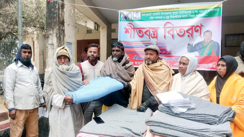 পাঁচবিবিতে নিজ অর্থায়নে ২ শতাধিক কম্বল বিতরণ