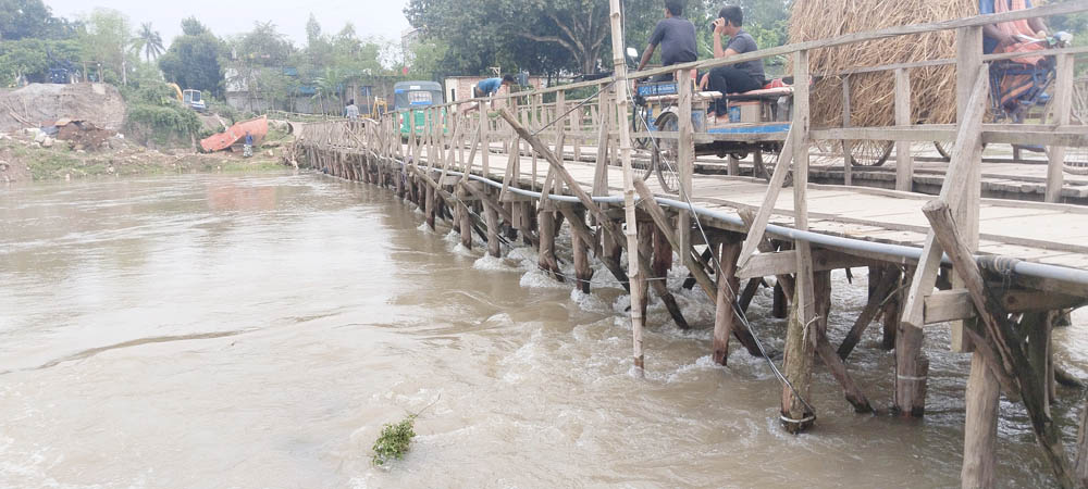 পাঁচবিবিতে নির্মানাধীন মাউরিতলা ব্রিজের বিকল্প কাঠের সাঁকোটি ঝুঁকিপূর্ণ