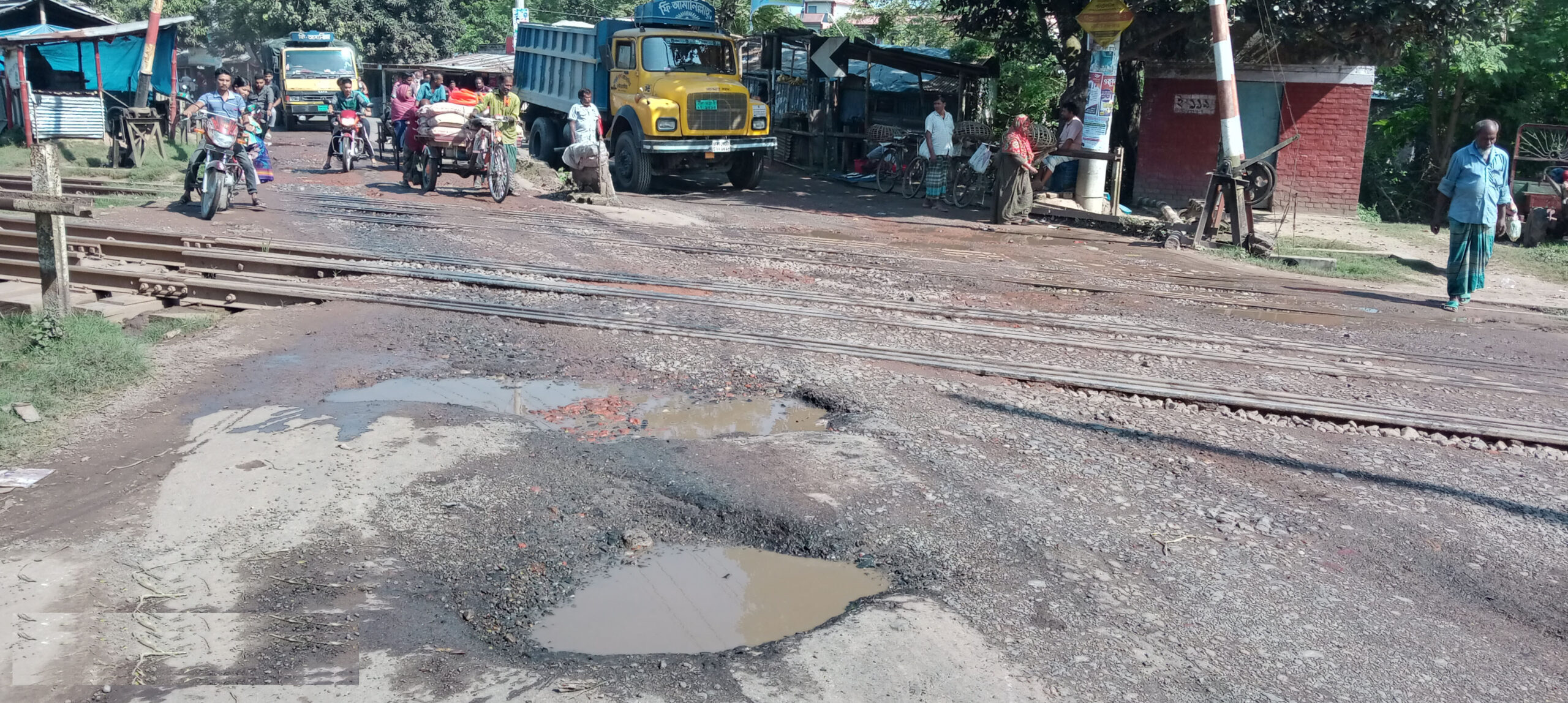 পার্বতীপুরে হলদীবাড়ী রেল গেটের দু’পাশের রাস্তার দুরাবস্থা