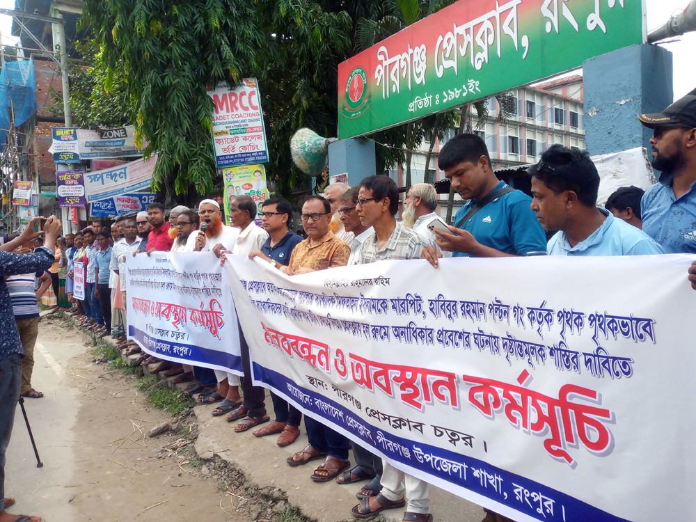 পীরগঞ্জে সাংবাদিককে মারপিটের প্রতিবাদে মানববন্ধন অনুষ্ঠিত