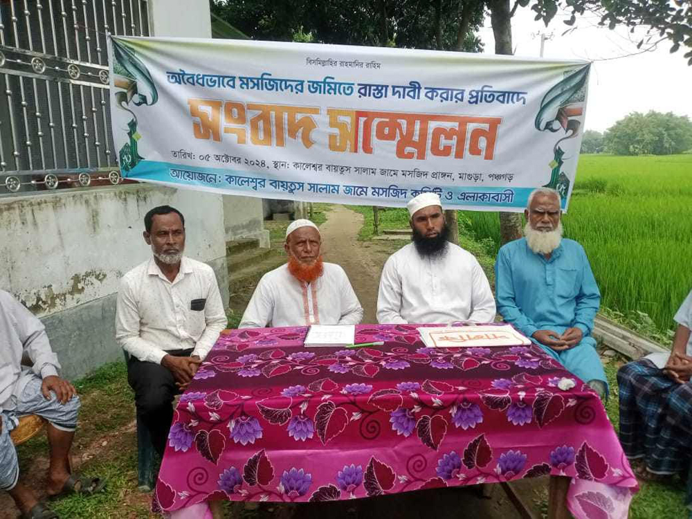 পঞ্চগড় জেলার সদর উপজেলার কালেশ্বর মসজিদের জমিতে রাস্তার দাবিতে একটি প্রভাবশালী পরিবারের বিরুদ্ধে মসজিদ কমিটি ও মুসল্লিদের হয়রানির অভিযোগ উঠেছে। অভিযোগ রয়েছে, মসজিদের জমির ওপর অবৈধভাবে রাস্তা দাবির কারণে প্রভাবশালী ব্যক্তি মসজিদ কমিটি এবং এলাকাবাসীকে নিয়মিত হুমকি দিয়ে আসছেন, ফলে মসজিদ কমিটির সদস্যসহ প্রায় ২১০টি পরিবার নিরাপত্তাহীনতায় ভুগছে।