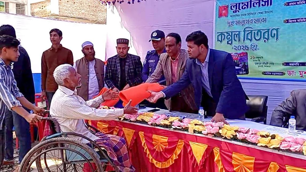 পৌরশহরের সুজাপুর চৌধুরী মোড়স্থ লুমেলিসা সংস্থার কার্যালয় চত্বরে আয়োজিত দুস্থদের মাঝে কম্বল বিতরণী অনুষ্ঠানে সভাপতিত্ব করেন সংস্থাটির সভাপতি মোছা. মেহেরুন নেছা চৌধুরী।