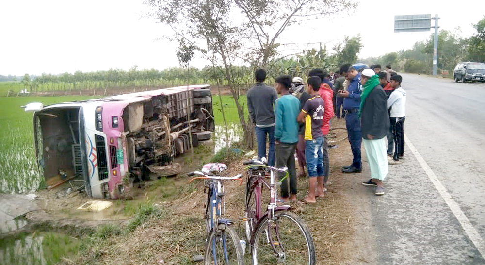 ফুলবাড়ীতে পিকনিকের বাস উল্টে আহত ১৬