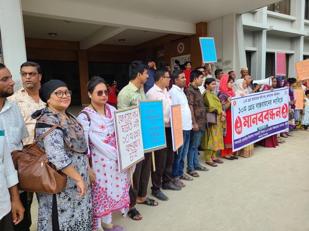 ফুলবাড়ীতে ১০ম গ্রেডের দাবিতে মানববন্ধন ও স্মারকলিপি প্রদান