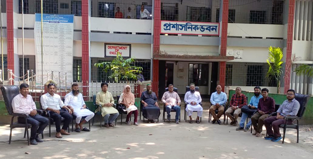 কর্মবিরতির সময় কলেজ প্রাঙ্গণে অবস্থান নেন কলেজের অধ্যক্ষ প্রফেসর খন্দকার মো. হুমায়ুন রেজা কবীর, উপাধ্যক্ষ প্রফেসর মো. আহসান হাবিব, বাংলা বিভাগের বিভাগীয় প্রধান মো. সাইফুদ্দীন এমরান, দর্শন বিভাগের সহকারী অধ্যাপক আহমেদুর রহমান, ইসলামের ইতিহাস ও সংস্কৃতি বিভাগের সহকারী অধ্যাপক মারজিয়া আহমেদ, বাংলা বিভাগের প্রভাষক মো. মতিউর রহমান, রসায়ন বিভাগের প্রভাষক মো. মনির উজ জামান মুন, প্রাণিবিদ্যা বিভাগের প্রভাষক মো. মোছাদ্দেকুর রহমান, ইতিহাস বিভাগের প্রভাষক মো. সারোয়ার হোসেন সবুজসহ বিভিন্ন বিভাগের শিক্ষকবৃন্দ।
