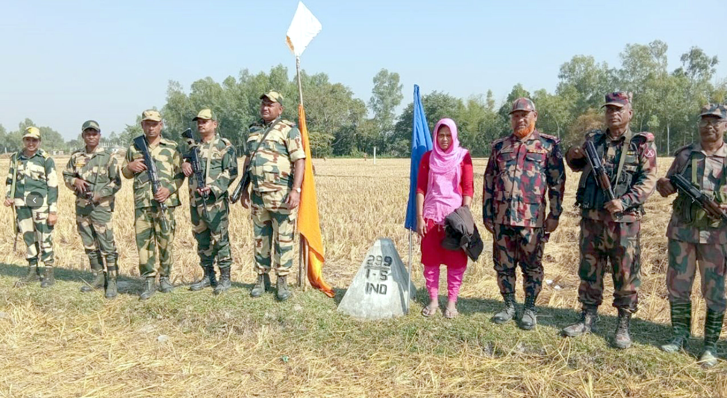 ফুলবাড়ী ২৯ ব্যাটালিয়নের প্রেসবিজ্ঞপ্তি সূত্রে জানা যায়, অনুপ্রেবেশের দায়ে ভারতে আটক বাংলাদেশি নাগরিক অর্চনা সুরিনকে ফেরতের জন্য বিএসএফ ৫৭ ব্যাটালিয়ন এর মাধবপুর কোম্পানী কমান্ডারের আহ্বাানে ফুলবাড়ী ২৯ ব্যাটালিয়নের অধীনস্থ রসুলপুর বিওপি’র দায়িত্বপূর্ণ এলাকার সীমান্ত পিলার ২৯৯/১ এসএ পিলারের কাছে ভারতের অভ্যন্তরে রসুলপুর শেখপাড়া (জিআর-৮২৫০৯৭, এমএস-৭৮ সি/১৪) নামক স্থানে আমড়া কোম্পানী কমান্ডারের সাথে আজ বৃহস্পতিবার সকাল সাড়ে ১০ থেকে সাড়ে ১১ টা পর্যন্ত ঘন্টাব্যাপী পতাকা বৈঠক অনুষ্ঠিত হয়।