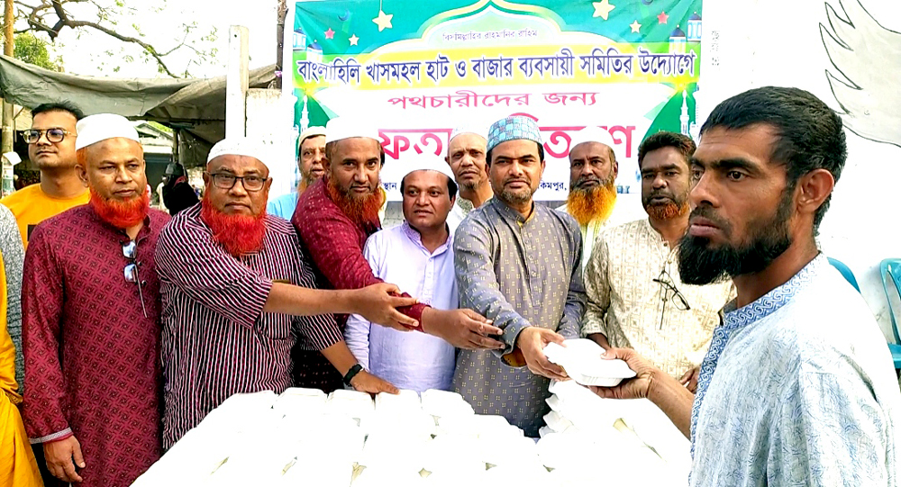 বাংলাহিলি বণিক সমিতির উদ্যোগে পথচারীর মাঝে ইফতার বিতরণ