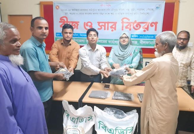 উপজেলা কৃষি অফিস প্রশিক্ষণ রুমে উপজেলা কৃষি অফিসার মো. লোকমান আলমের সভাপতিত্বে প্রধান অতিথি হিসেবে বিনামূল্যের বীজ ও সার বিতরণ করেন উপজেলা নির্বাহী অফিসার মৌসুমী হক। উপজেলার নয়টি ইউনিয়নে ২০২৪-২৫ অর্থবছরের প্রণোদনা কর্মসূচির আওতায় রবি মৌসুমে সরিষা, গম, ভুট্টা, সয়াবিন, পিয়াঁজ, মুগ, অড়হর ও বোরো ফসলের আবাদ বৃদ্ধির লক্ষ্যে ক্ষুদ্র এবং প্রান্তিক কৃষকদের মাঝে বিনামূল্যে এই বীজ ও সার বিতরণ করা হয়। এসময় উপস্থিত ছিলেন, উপ-সহকারী উদ্ভিদ সংরক্ষণ কর্মকর্তা হাবিবুর রহমান, উপ-সহকারী কৃষি কর্মকর্তা লিয়াকত আলী প্রমুখ।