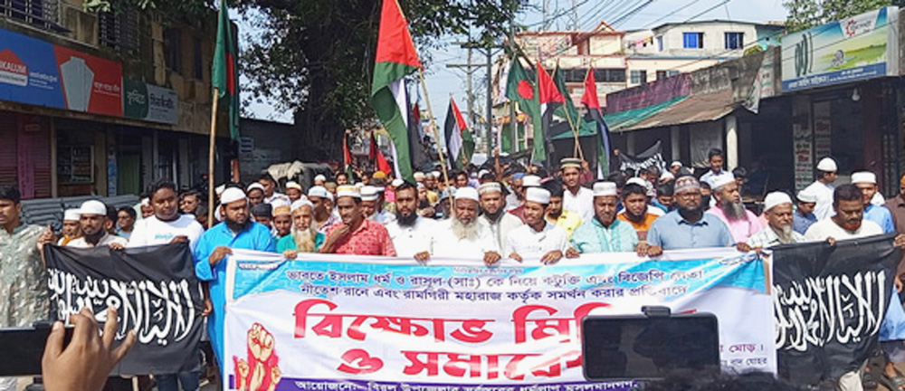 ভারতে ইসলাম ধর্ম ও রাসূল (সা.)কে নিয়ে কটূক্তি এবং বিজেপি নেতা নীতেশ রানে এবং রামগিরী মহারাজ কর্তৃক সমর্থন করার প্রতিবাদে প্রতিবাদ মিছিল সমাবেশ অনুষ্ঠিত হয়েছে। এ উপলক্ষে আজ (সোমবার) বাদ জোহর বিরল বকুলতলা মোড় থেকে প্রতিবাদ মিছিল বের করা হয়। পরে সেখানে সমাবেশ অনুষ্ঠিত হয়। এসময় বক্তব্য রাখেন ধর্মপ্রাণ মুসলমানগণ। তারা বলেন, সর্বকালের সরবশ্রেষ্ঠ মানব প্রিয় রাসূল (সা.)কে নিয়ে যারা কটূক্তি করে, আল্লাহর প্রিয় দোস্তকে যারা অবমাননা করে, কোটি কোটি মুসলমানদের অনুপ্রেরণা যিনি তিনাকে নিয়ে যারা কটূক্তি করে তার কোনো ছাড় নাই, হোক সে যেকোনো ধর্মের কিংবা নিজ পরিবারের কেউ। ভারতের বিজেপি নেতা নীতেশ রানে এবং রামগিরী মহারাজ কর্তৃক সমর্থন করার জন্য তীব্র নিন্দাসহ তাকে শাস্তি জোর দাবি জানান। প্রতিবাদ মিছিল ও সমাবেশে বিরল উপজেলার সকল ধর্মপ্রান মুসলমানগণ অংশগ্রহণ করে।