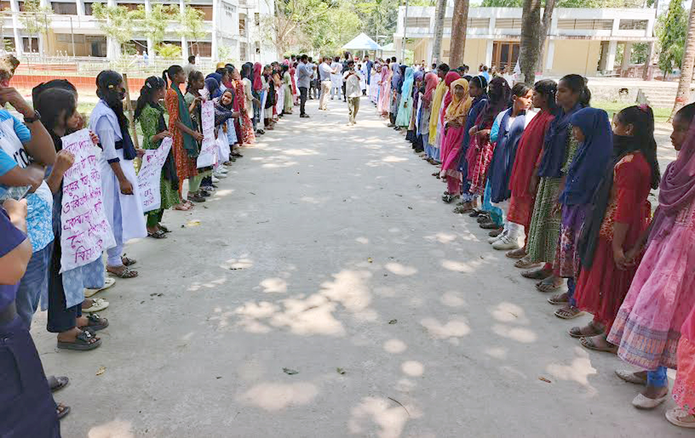 বিরলে যৌন নিপীড়নে অভিযুক্ত শিক্ষককে স্থায়ী বহিষ্কারের দাবিতে মানববন্ধন