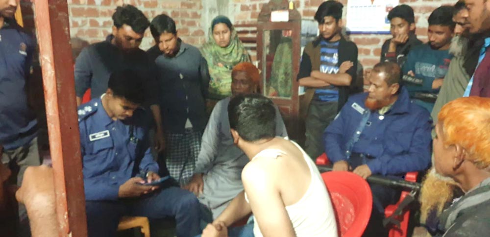 এক পর্যায়ে আমার মা বাইরে চিল্লাচিল্লি করলে আমাদের প্রতিবেশী মো. আমানুর রহমান ৯৯৯ এ ফোন দিয়ে পুলিশকে অবহিত করেন। একপর্যায়ে গ্রামবাসীরা একত্র হয়ে মসজিদের মাইকে তাদের প্রতিহতের জন্য ঘোষণা করেন।