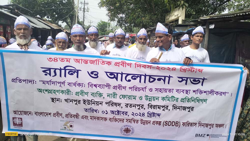 আন্তর্জাতিক প্রবীণ দিবস উপলক্ষ্যে বিরামপুর উপজেলার খানপুর ইউনিয়ন পরিষদ চত্বরে মঙ্গলবার (১ অক্টোবর) বেলা ১২ টায় এলাকার প্রবীণদের নিয়ে সমাবেশ করা হয়েছে। কারিতাস দিনাজপুর অঞ্চলের বাংলাদেশ প্রবীণ, প্রতিবন্ধী এবং মাদকাসক্ত ব্যক্তিদের সমন্বিত উন্নয়ন প্রকল্প এসডিডিবির আয়োজনে বর্ণাঢ্য শোভাযাএা শেষে উপজেলা প্রবীণ ও প্রতিবন্ধী কমিটির সভাপতি আব্দুর রহমানের সভাপতিত্বে আলোচনা সভা হয়েছে।