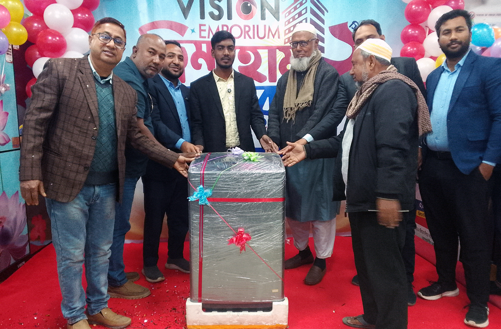 ভিশন এম্পোরিয়াম বিরামপুর থেকে একটি মোবাইল ফোন কিনে লটারীর মাধ্যমে ওয়াশিং মেশিন জিতেছেন আলমগীর হোসাইন। আজ মঙ্গলবার বিকেলে আনুষ্ঠানিক ভাবে বিরামপুর শো-রুম থেকে তাকে পুরস্কার প্রদান করা হয়েছে।