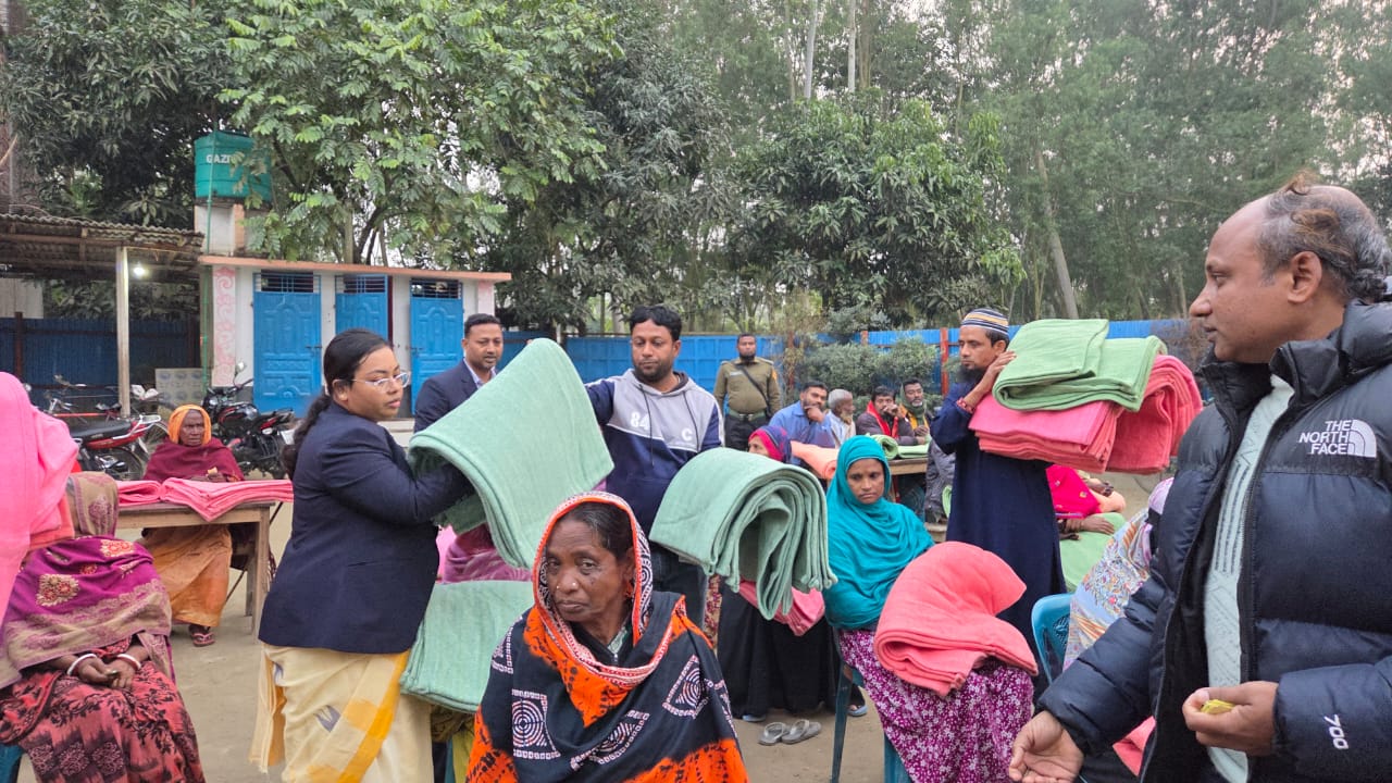 বিরামপুর সীমান্তের দেড় শতাধিক বয়স্ক নারীপুরুষকে কম্বল দিল আলোর ঠিকানা