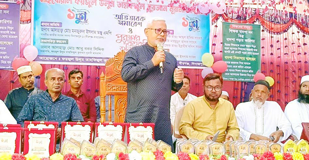 দিনাজপুরের বীরগঞ্জ উপজেলার মাছবোয়াল এলাকায় অবস্থিত ফয়জুল উলুম তাহফিজুল কুরআন নূরানী মাদরাসার উদ্যোগে এক আনন্দঘন পরিবেশে অভিভাবক সমাবেশ ও পুরস্কার বিতরণ অনুষ্ঠিত হয়েছে।