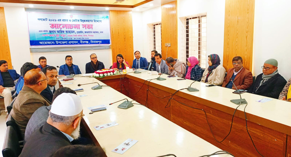 ত্রয়োদশ জাতীয় সংসদ নির্বাচন ও গণভোটের প্রচার এবং ভোটারদের উদ্বুদ্ধকরণে দিনাজপুরের বীরগঞ্জে এক সভা অনুষ্ঠিত হয়েছে।