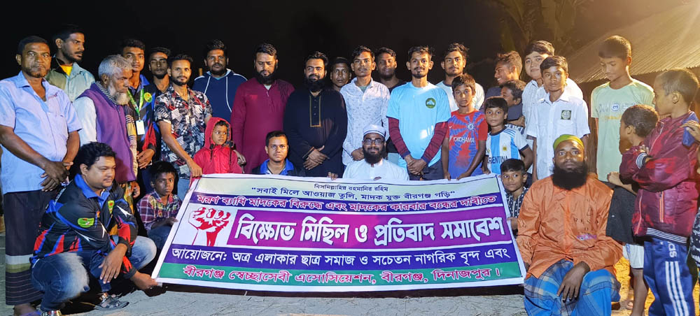 বীরগঞ্জে মাদক ব্যবসা বন্ধের দাবিতে বিক্ষোভ মিছিল ও প্রতিবাদ সমাবেশ