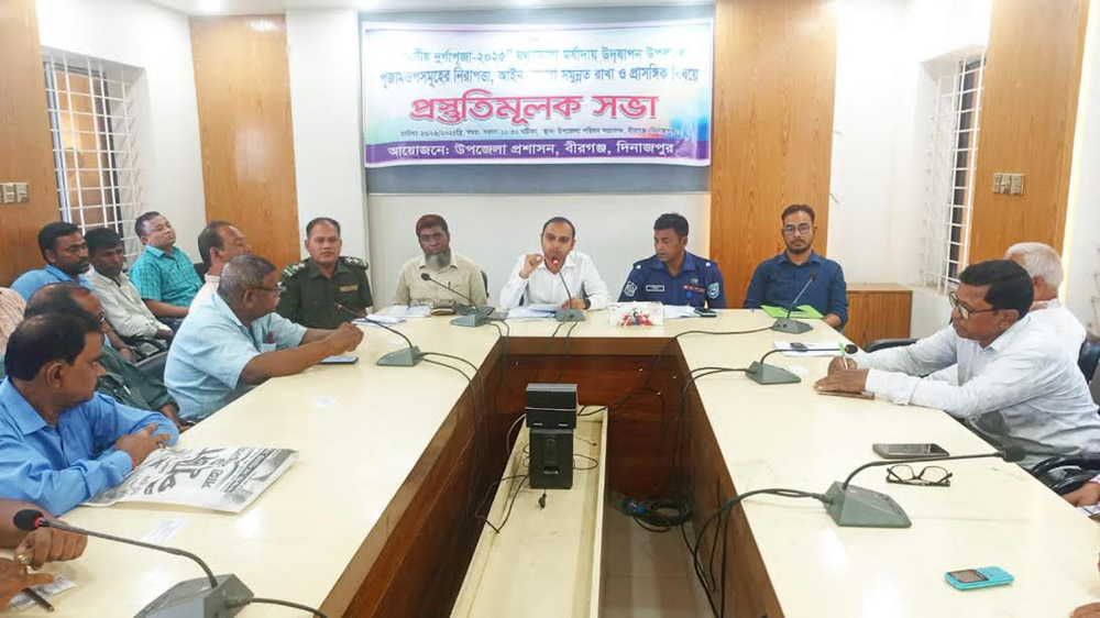 বীরগঞ্জে শারদীয় দুর্গাপূজা উদযাপন উপলক্ষে প্রস্তুতিমূলক সভা অনুষ্ঠিত