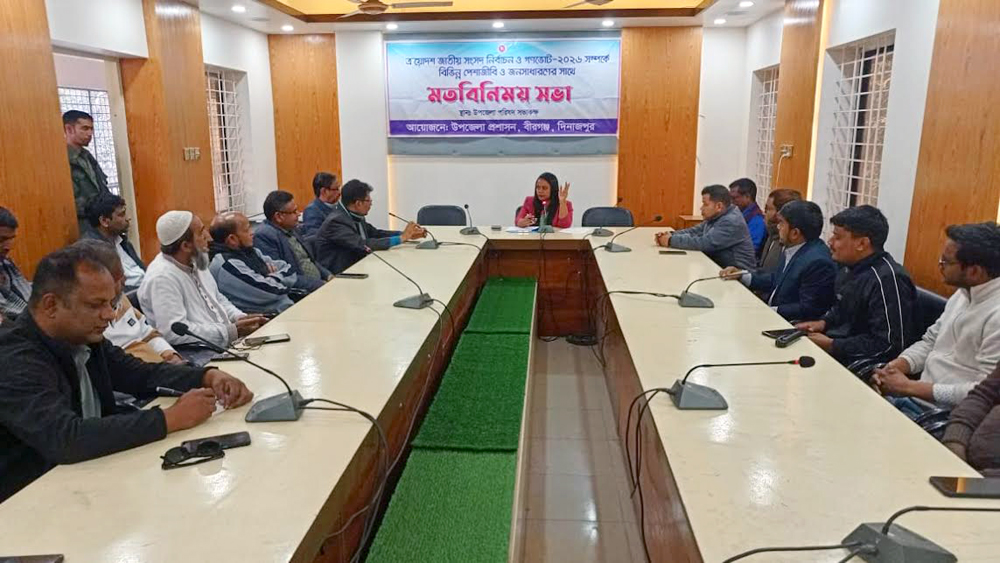 দিনাজপুরের বীরগঞ্জে আসন্ন ত্রয়োদশ জাতীয় সংসদ নির্বাচন ও গণভোট -২০২৬ উপলক্ষে সাংবাদিকদের সাথে মতবিনিময় সভা অনুষ্ঠিত হয়েছে।