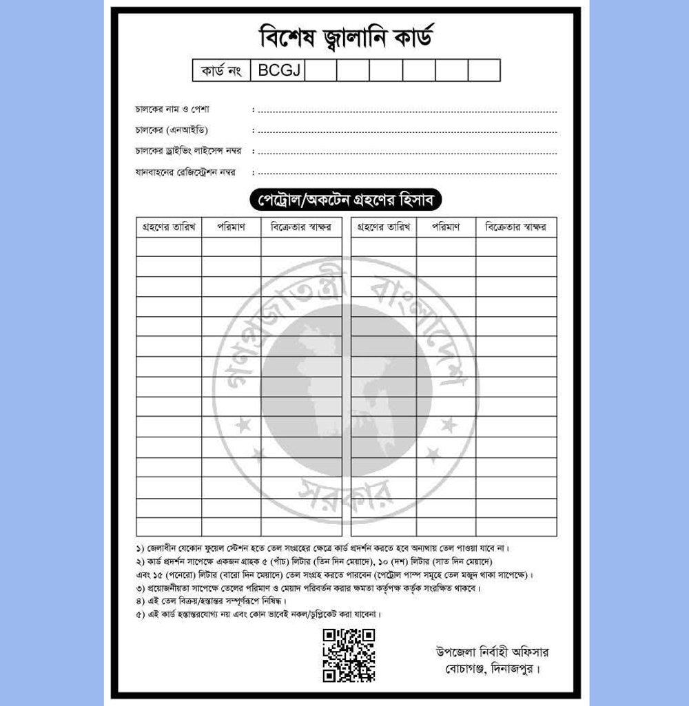 বোচাগঞ্জে আগামী কাল থেকে ফুয়েল কার্ডের আবেদন শুরু