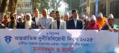 দিনাজপুর জেলার বোচাগঞ্জ উপজেলায় আন্তর্জাতিক দুর্নীতি প্রতিরোধ দিবস উপলক্ষে র্যালী ও আলোচনা সভা অনুষ্ঠিত হয়েছে।
