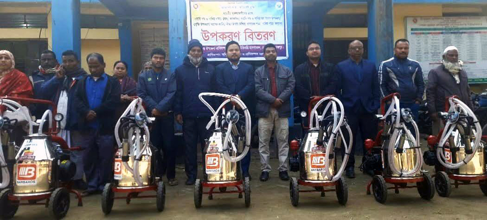 বোচাগঞ্জে খামারীদের মাঝে মিল্কিং মেশিন বিতরণ