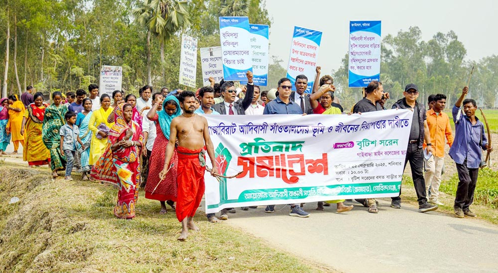 ভূমি ও জীবনের নিরাপত্তা চেয়ে সাঁওতালদের প্রতিবাদ সমাবেশ