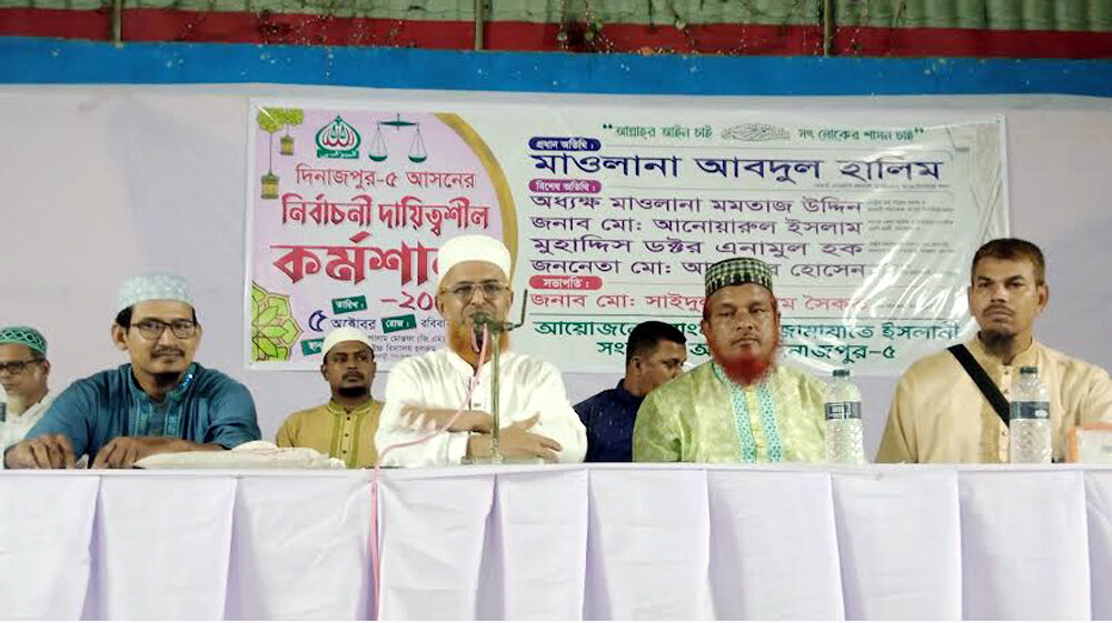 আজ রোববার উপজেলার গোলাম মোস্তফা (জিএম) পাইলট উচ্চ বিদ্যালয়ের হলরুমে বাংলাদেশ জামায়াতে ইসলামী সংসদীয় আসন দিনাজপুর-৫ আয়োজিত দিনব্যাপি নির্বাচনী দায়িত্বশীল কর্মশালায় প্রধান অতিথির বক্তব্যে তিনি এসব কথা বলেন।