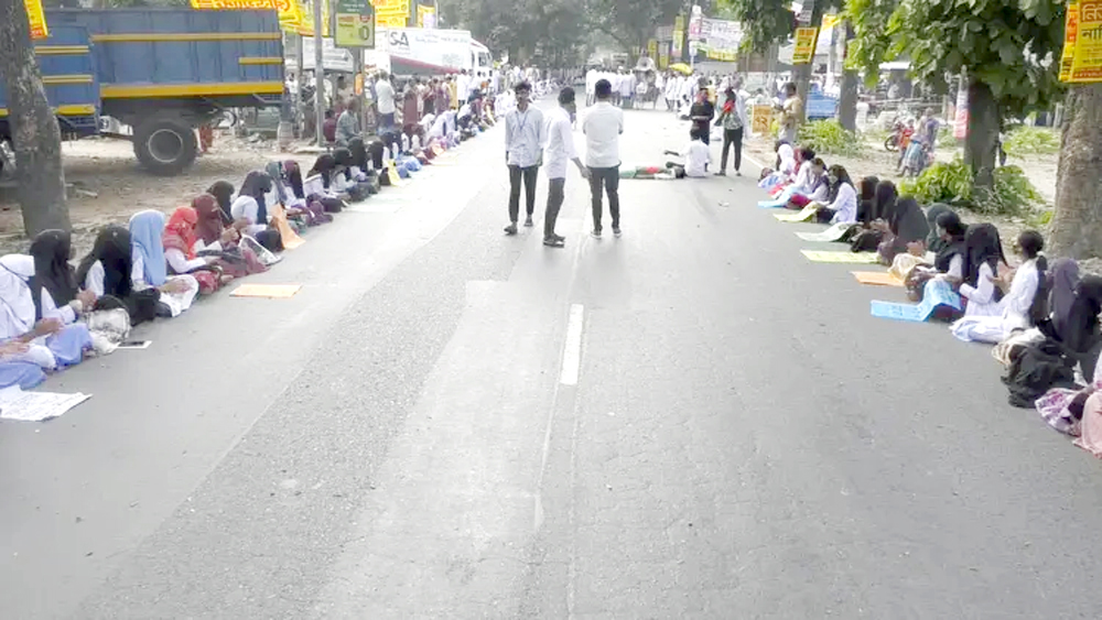 মহাসড়ক অবরোধ করে ফার্মেসি ছাত্রদের বিক্ষোভ