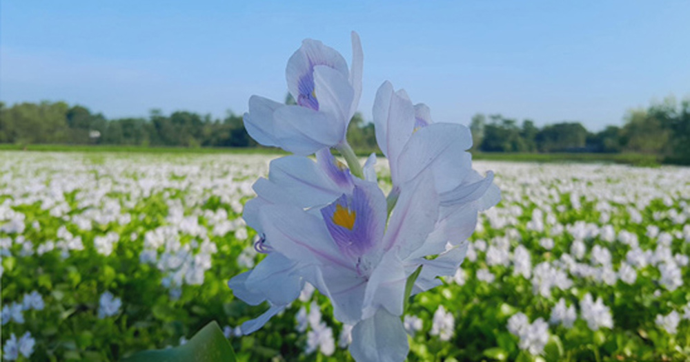 মুগ্ধতা ছড়াচ্ছে অযত্নে বেড়ে ওঠা কচুরিপানা ফুল