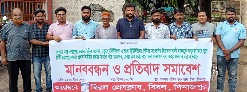 রংপুরে সাংবাদিক নির্যাতনের প্রতিবাদে বিরলে মানববন্ধন ও প্রতিবাদ সমাবেশ