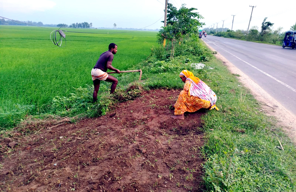 সড়কের ধারে উন্নত জাতের ঘাস চাষে খরচ কমছে খামারিদের