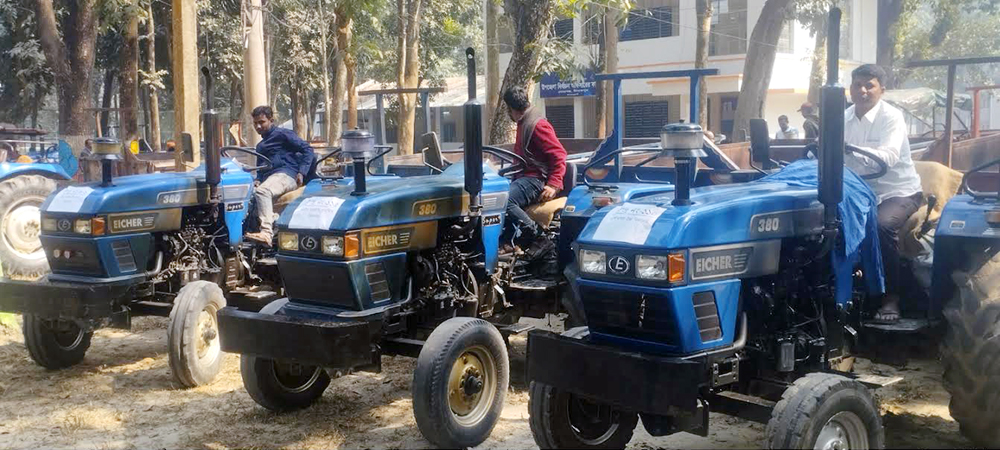 আজ বুধবার সকাল থেকে বোচাগঞ্জ উপজেলার নিবার্চন অফিসের সামনে ট্রাক্টর গুলো জড়ো করা হয়। ত্রয়োদশ জাতিয় নির্বাচনে ভোটকেন্দ্রে সরঞ্জাম সরবরাহের কাজে ব্যবহার হয় এসব যান। অন্য সময় এসব যান অবৈধ হলেও নির্বাচনের সময় তা কাজে লাগানো হচ্ছে বৈধ মনে করেই।