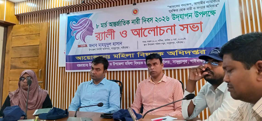 ‘আজকের পদক্ষেপ, আগামীর ন্যায়বিচার—সুরক্ষিত হোক নারী ও কন্যার অধিকার’ এই প্রতিপাদ্যকে সামনে রেখে গাইবান্ধার সাদুল্লাপুরে আন্তর্জাতিক নারী দিবস-২০২৬ পালিত হয়েছে।